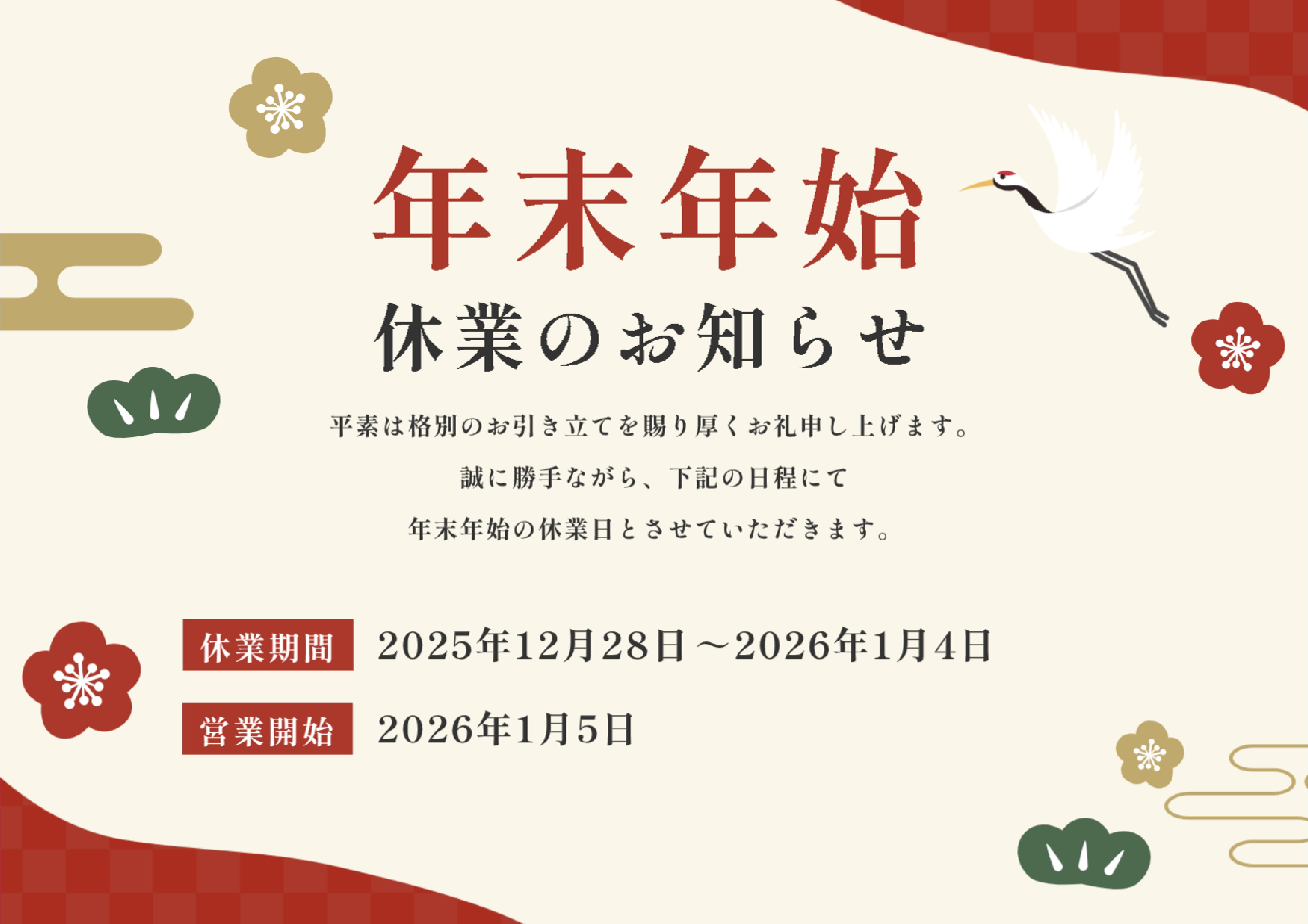 2025.12.15 お知らせ 年末年始休業のご案内 2025.01.01 お知らせ 新年のご挨拶申し上げます 2024.12.13 お知らせ 年末年始休業のご案内 2024.07.29 お知らせ 夏期休業のお知らせ 2024.04.17 お知らせ ゴールデンウィーク休業のお知らせ 2024.01.01 お知らせ 新年のご挨拶申し上げます 2023.12.19 お知らせ 年末年始休業のご案内 2023.01.01 お知らせ 新年のご挨拶申し上げます 2022.12.29 お知らせ 年末年始休業のご案内 2022.08.02 お知らせ 夏期休業のお知らせ 2022.07.11 お知らせ 《急募》①現場作業員 ②エクステリア プランナー スタッフ大募集! 2022.01.01 お知らせ 新年のご挨拶申し上げます 1 2 3 次へ »